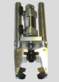 Der Greifer für Formflaschen mit Pneumatikzylinder und Greifbacken. |